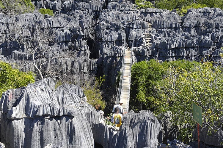 Le parc s’étend sur 18 225 hectares, dont 70 % sont couverts par les célèbres Tsingy gris, des formations karstiques pointues sculptées par des millions d’années d’érosion due au vent, à la chaleur et à la pluie. Vous aurez le choix entre plusieurs circuits fascinants :